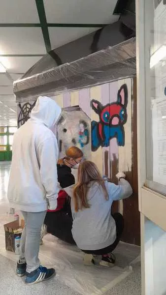 Plakatmalerei kreativ auszudrücken und ein Graffitiworkshop. Vor allem der Graffitiworkshop hinterließ zahlreiche produktive Ergebnisse an den